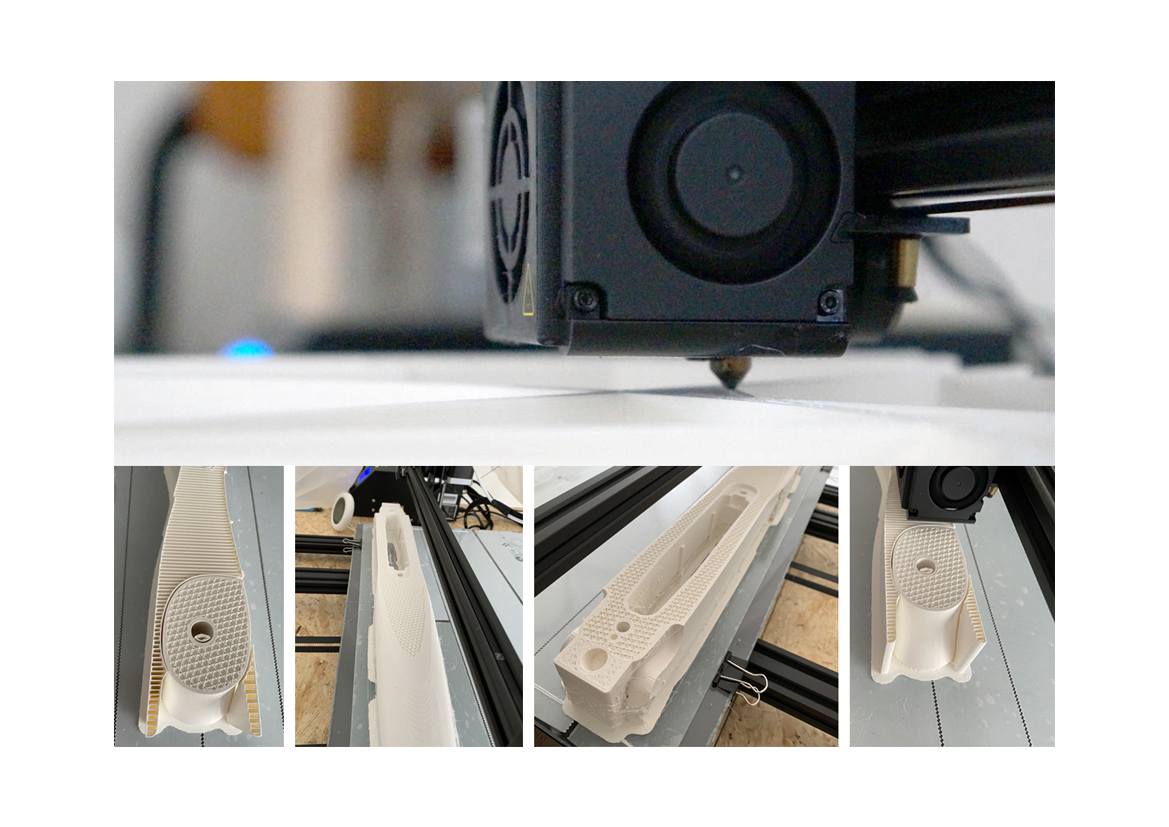En cas de surplombs, des structures de support peuvent être utilisées. Elles sont réalisées dans le même matériau ou dans un matériau soluble. Le processus est répété jusqu’à l’obtention de l’objet final.